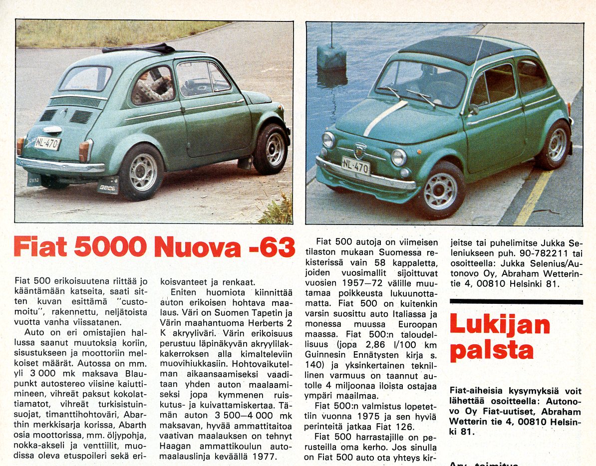 500 R, 1972-1975, alustanumerot 5.096.796 - 5.231516 (Termini), 6.120.654 - 6.154362 Desio 1972-1973), moottori 594 cc, moottorityyppi 126A5.000, moottori ja paljon muuta tekniikkaa on peräisin Fiat 126 mallista.
