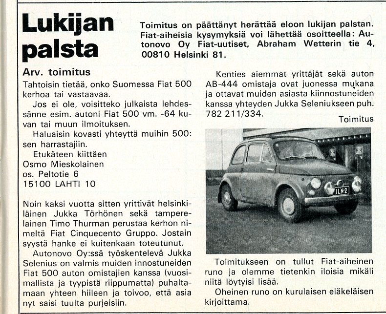 500 R, 1972-1975, alustanumerot 5.096.796 - 5.231516 (Termini), 6.120.654 - 6.154362 Desio 1972-1973), moottori 594 cc, moottorityyppi 126A5.000, moottori ja paljon muuta tekniikkaa on peräisin Fiat 126 mallista.